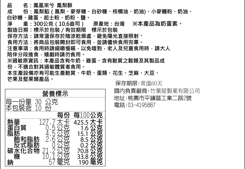🌟 食品特色: 選用嚴選法國奶油製作,奶香濃郁、風味更勝傳統鳳梨酥。